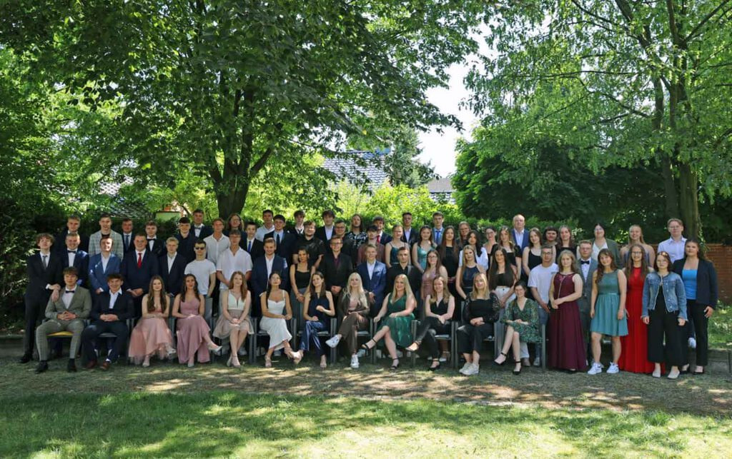Nach der Ansprache der Stufenleiter Ulrich Stüecken und Sabine Kleymann wurden die Zeugnisse an: Maya Ackfeld, Emily Nora Bogacki, Niclas Bremer, Lian Miron Bubolz, Annika Colato, Robin Jonas Conradi, Noah Joel Derksen, Luis Dombrowski, Tim Drücker, Julian Daniel Effenberger, Emma Marie Fälker, Rouven Benjamin Fälker, Niklas Fleige, Raphael Forsthövel, Celia Garbelmann, Moritz Gesenhoff, Mathis Grabowski, Timo Grohnert, John Haase, Joana Marie Hampel, Justin Henning, Lea Jolie Hentschel, Lea Herale, Justus Heße, Merle Hillen, Jonah Hülk, Meik Iochim, Arthur Jäger, Paul Jeismann, Linn Kämpf, Birte Koy, Maria Kruszynska, Kacper Kruszynski, Vahab Kurt, Joana Kusemann, Diana Lik, Simon Mette, Nele Mludek, Laila Niehues, Greta Niemietz, Lukas Nienhaus, Martin-Augustin Ogermann, Lennart Ogrzal, Leonard Penzenstadler, Annika Peters, Matthias Peters, Jonas Pettendrup, Jule Romberg, Lars-Ole Schlichting, Hanna Schlieker, Jonas Schloss, Chayenne Schneider, Leni Marie Schütte, Jan Luis Seebröcker, Jonas Sommer, Nils Sondermann, Lynn Steinhoff, Leonard Steybe, Joshua Tegner, Liv Moana Thiesen, Sophie Maris Thiesen, Maximilian Thoss, Luke Timmermann, Sarah Tönjann, Karina Vasilenko, Marlena van Waterschoot, Nele Weniger, Johanna Wittwer, Muriel Wördemann und Dorian Zajac überreicht.