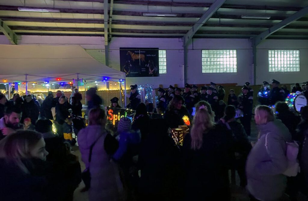 Natürlich kam auch die Gemütlichkeit mit Essen und Trinken nicht zu kurz. Tradition haben auch die leckeren Martinsbrezeln. Die Reithalle war festlich beleuchtet und wer aufmerksam war,