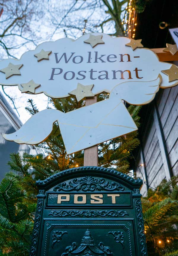 Und schließlich ist auch das „Wolkenpostamt“ im Lichterwald positioniert: Hier können Kinder ihre Weihnachtswünsche in den Briefkasten einwerfen. Jeder Brief wird mit einer kleinen Überraschung beantwortet (Adresse nicht vergessen!). Außerdem gibt es dort Geschenkideen zu Weihnachten aus der Tourist-Info wie z.B. „Winterzauber Werner“, die besondere Picknickkiste.