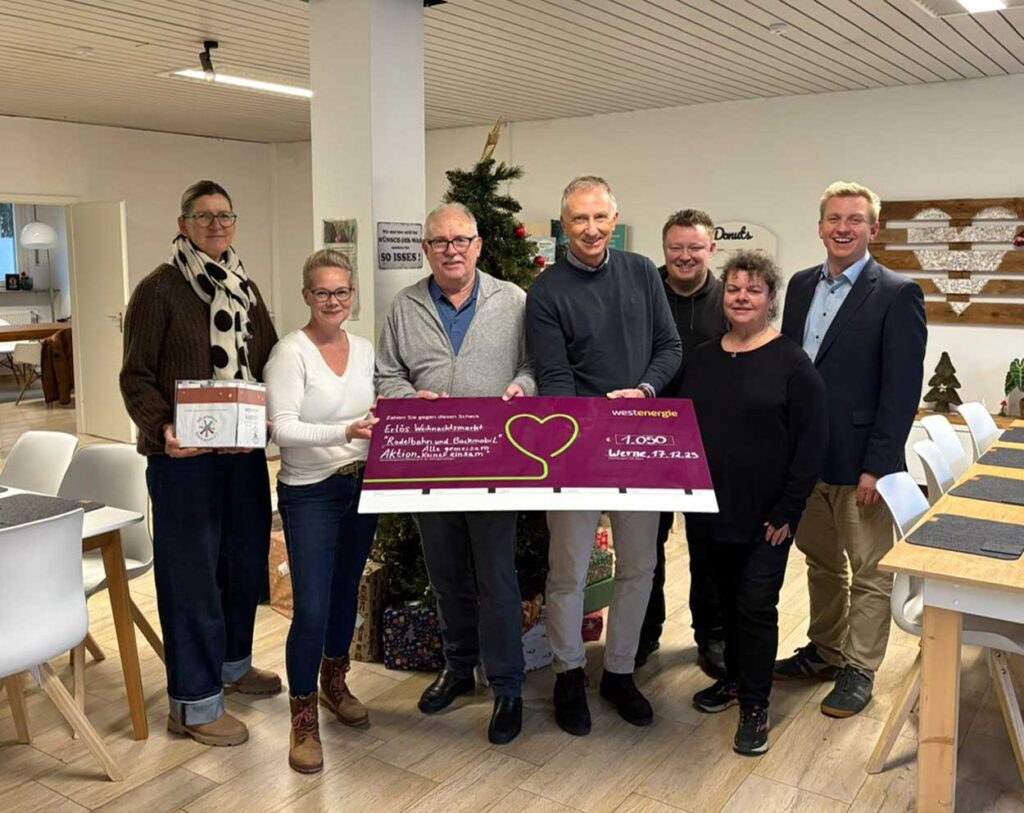 Auch bei dem Weihnachtsmarkt 2025 wurden die Rodelbahn und der Auftritt vom Trommelfloh erst durch die großzügige Unterstützung der Westenergie AG möglich. Erneut engagierte sich der Energiedienstleister und Infrastrukturanbieter dabei am Familientag mit seinem Backmobil aktiv für eine Spendensammlung – im zweiten Jahr für den Verein „Alle gemeinsam, keiner einsam“.