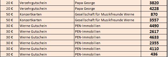 Gewinne können in diesem Jahr im Büro Blumrich, Bispinghoff & Partner, Freiherr-vom-Stein-Str. 22 in Werne abgeholt werden. Die Kanzlei ist vom 22. Dezember 2025 bis 2. Januar 2026 geschlossen. Die Gutscheine können im Anschluss ab dem 5. Januar 2026 zu den gewohnten Öffnungszeiten (Montag-Donnerstag 8-17 Uhr und Freitag 8-14 Uhr) abgeholt werden.