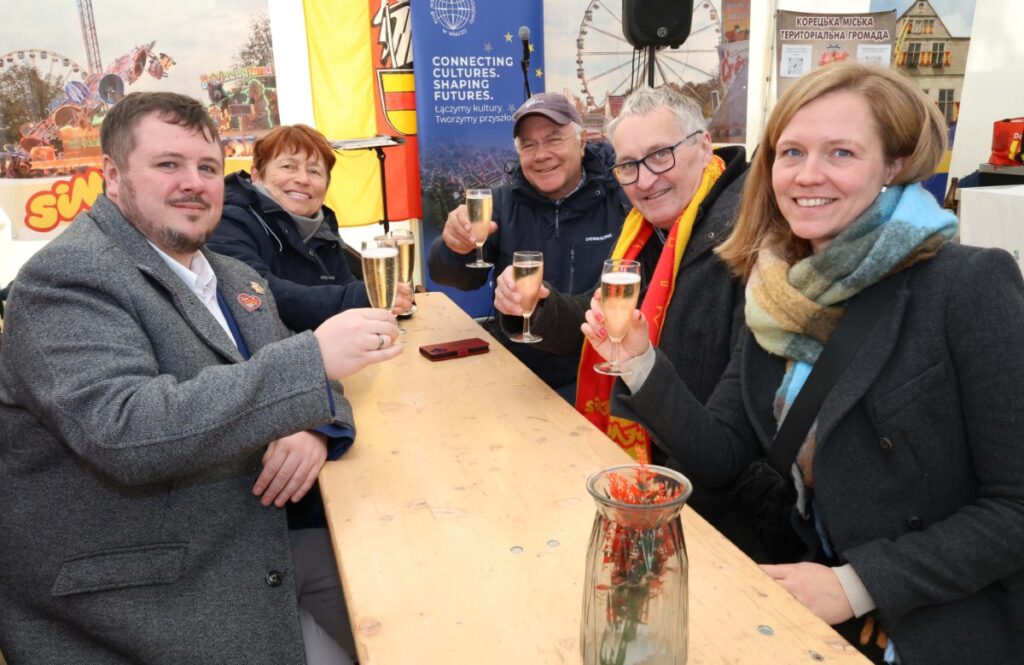 Wärmendes von Innen gibt es unter anderem von den internationalen Gästen aus den Werner Partnerstädten. Im Partnerschaftszelt, in dem Vertreterinnen und Vertreter der Partnerstädte Köstlichkeiten aus ihrer Heimat anbieten, waren beispielsweise französischer Champagner und polnisches Bier gefragt.