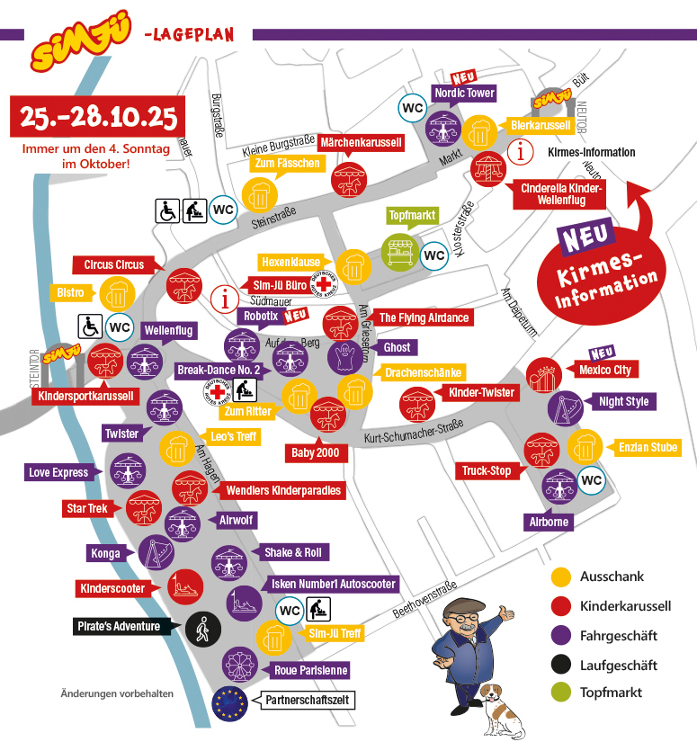 Mit einer besonderen Rabattaktion anstelle der Sim-Jü-Gutscheine warten die Schausteller und Beschicker des Volksfestes auf. Der Sim-Jü-Dienstag werde zum Familien-Dienstag, erklärte Kornelia Brocke die neue Variante. Danach sind nicht nur Fahrgeschäfte sondern auch alle anderen Beschicker aufgerufen, mit Rabatten den vierten Kirmestag zu einem rundum familienfreundlichen Ereignis zu machen. Plakate an verschiedenen Stelle auf dem Festgelände informieren darüber, welche Rabattaktion wo zu finden sind, erläuterten Schnatmann und Brocke den Modus.