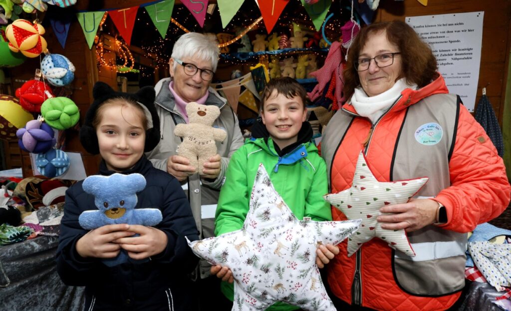 Neben auswärtigen Anbietenden ist auf dem Markt auch die ZwAR-Gruppe „Nähen – Gutes tun“ aus Werne dabei. An dem Stand suchen Interessierte vergeblich nach Preisauszeichnungen – hier wird für die vielen handgefertigten Textilien auf freiwilliger Basis gespendet. „Wir möchten keine Reichtümer anhäufen, sondern nur das einnehmen, was wir brauchen, um Stoffe zu kaufen“, so ZwAR-Koordinatorin Angelika Böcker.