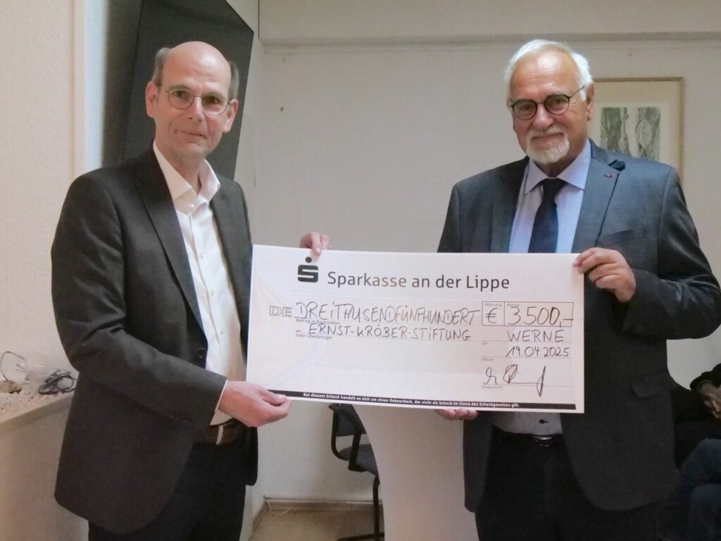 In den Anfangsjahren habe sich Joseph Kremer als „Geldbeschaffungskünstler“ erwiesen. Unterstützt von Fritz Fulbrecht holte er den damaligen Sparkassen-Direktor Gerhard-Ludwig Dresen ins Boot. „Seitdem ist die Stadtsparkasse Werne, auch nach der Fusion und Umbenennung in Sparkasse an der Lippe, unserer Stiftung eng verbunden“, sagte Tappe. Er dankte dafür – und konkret außerdem für 3.500 Euro, die Vorstandsmitglied Martin Abdinghoff als Geburtstagsgeschenk überreichte.
