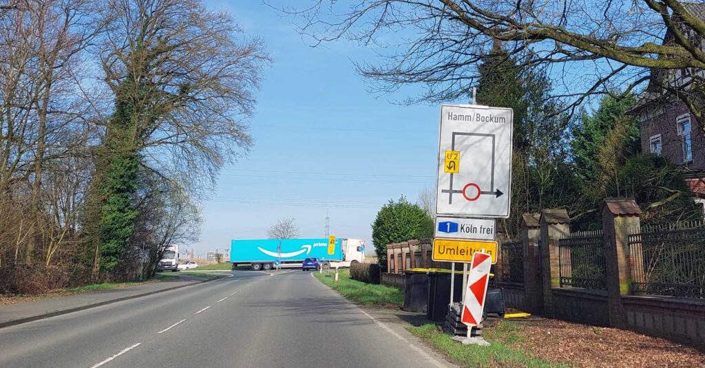 Umleitungen sind ausgeschildert. Für die Nordlippestraße führen diese über die Lipperandstraße, Oberholsener Straße, Tarnowitzer Straße, Janssenstraße, Am Lausbach, Dortmunder Straße, Ostenhellweg, B233, Freiherr-von-Stein-Straße, Hansaring, Münsterstraße bis zur Nordlippestraße. Für die Abfahrt in Fahrtrichtung Köln ist eine Umleitung per rotem Punkt über die Anschlussstelle Hamm-Bergkamen eingerichtet.