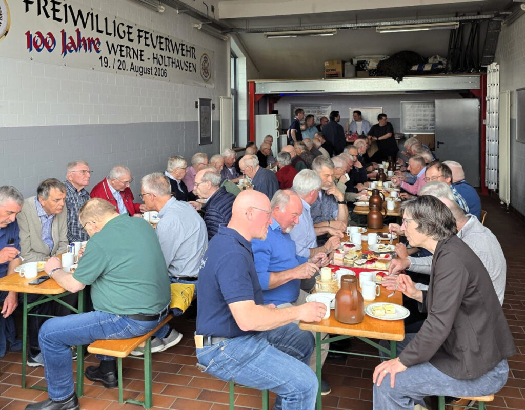 Zum Start kam man im Gerätehaus im Ortsteil Holthausen bei Kaffee und Kuchen in gemütlicher Runde zusammen. Die Bewirtung übernahmen die Aktiven der Feuerwehr, die so ihre Verbundenheit und Wertschätzung gegenüber der Ehrenabteilung zum Ausdruck brachten.