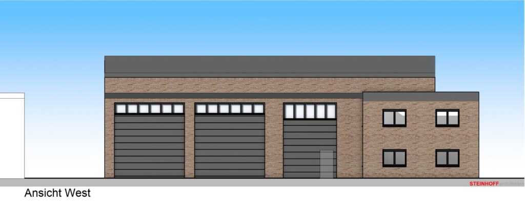 Der neue Gebäudekomplex umfasst einen Hallenbereich von rund 700 Quadratmetern. Im Obergeschoss der Halle entsteht ein Sozialtrakt mit etwa 110 Quadratmetern, ergänzt durch ein angrenzendes Bürogebäude mit rund 250 Quadratmetern, verteilt auf zwei Geschosse.