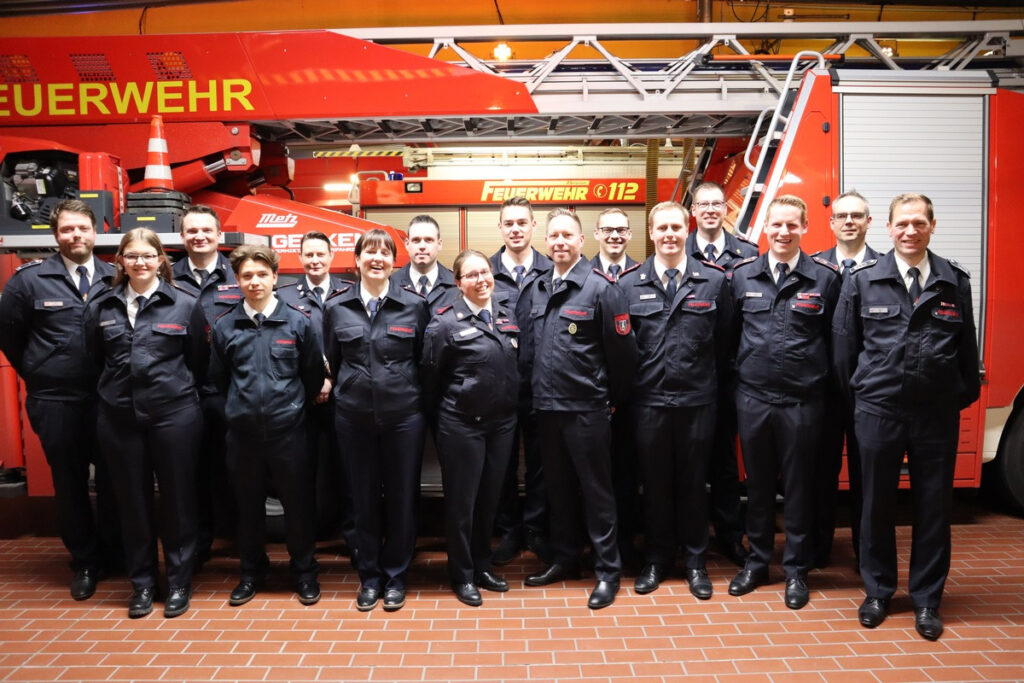 In der Unterstützungsabteilung wurde Tatjana Kuhn zur Feuerwehrfrau befördert. Bei den Aktiven wurden Jannik Große-Wienker, Sydney-Rose Kauke, Marvin Klaus und Max Trottenberg zum Feuerwehrmann bzw. zur Feuerwehrfrau befördert. Chris Bierbaum und Boris Redlich wurden zum Oberfeuerwehrmann befördert, Marvin Blümel, Simon Lembcke und Malte Sommer zum Unterbrandmeister befördert. Zum Brandmeister wurden Martin Schulze und Kai Tauchert befördert. Thilo Schleking erhielt seine Beförderung zum Brandinspektor.