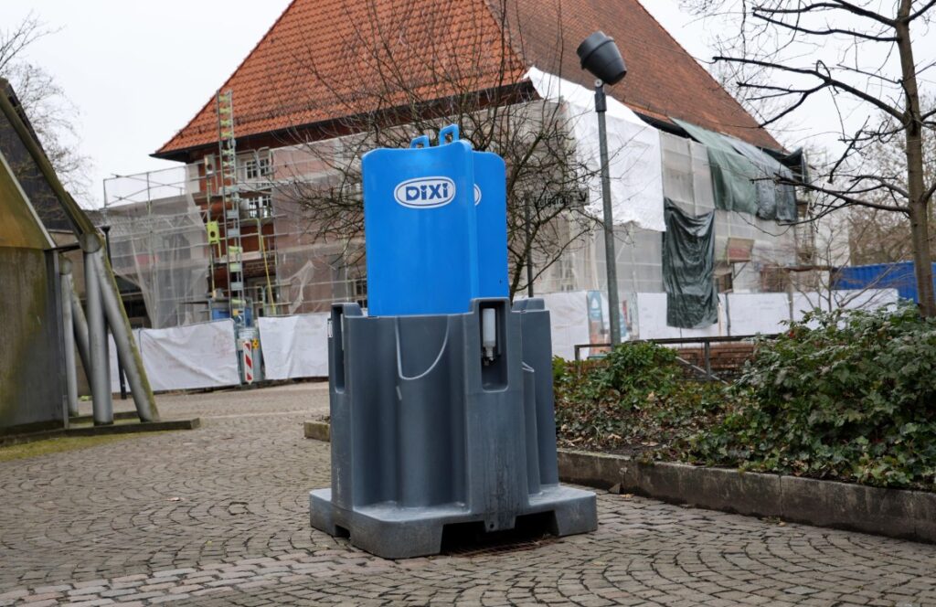 Schon am Wochenende waren die ersten sanitären Vorkehrungen für die Großveranstaltung in der Innenstadt positioniert. Foto: Volkmer