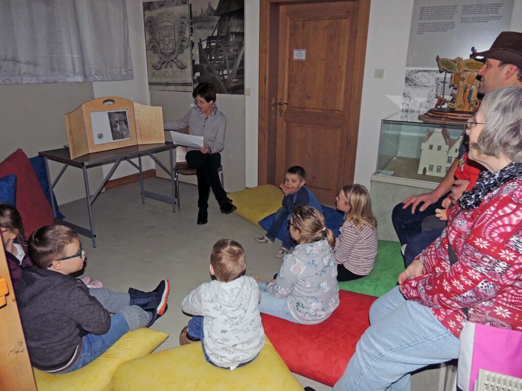 Nach der ersten Stärkung öffnete Martina Kober den Vorhang des Erzähltheaters und ließ die kleinen Gäste in winterliche Märchenwelten eintauchen. Mit ihrer ansprechenden Art des Vorlesens begeisterte sie Kinder wie Erwachsene.