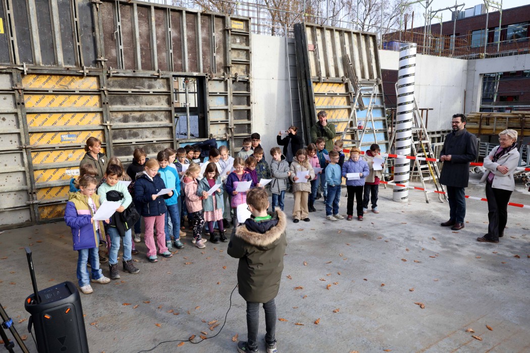 Werne. Seit dem Sommer gibt es für die Kinder der Wiehagen-Grundschule an jedem Schultag viel zu sehen. Erst ist die alte Turnhalle abgerissen worden, nun laufen auf der Fläche die Arbeiten für den Erweiterungsbau. Am Donnerstag, 13. November, ist die symbolische Grundsteinlegung erfolgt.