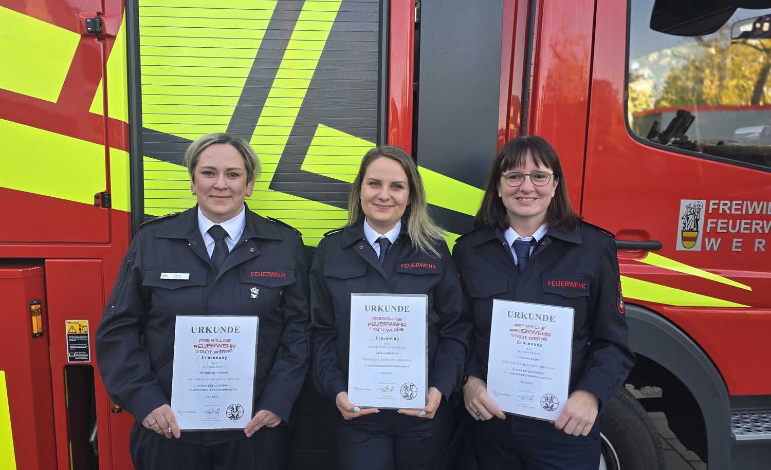 Im Zuge der Gründung wurden auch die Führungskräfte der neuen Kinderfeuerwehr offiziell ernannt: Saskia Roesler übernimmt das Amt der Stadtkinderfeuerwehrwartin. Unterstützt wird sie von ihren beiden Stellvertreterinnen Desirée Blaurock und Tatjana Kuhn.