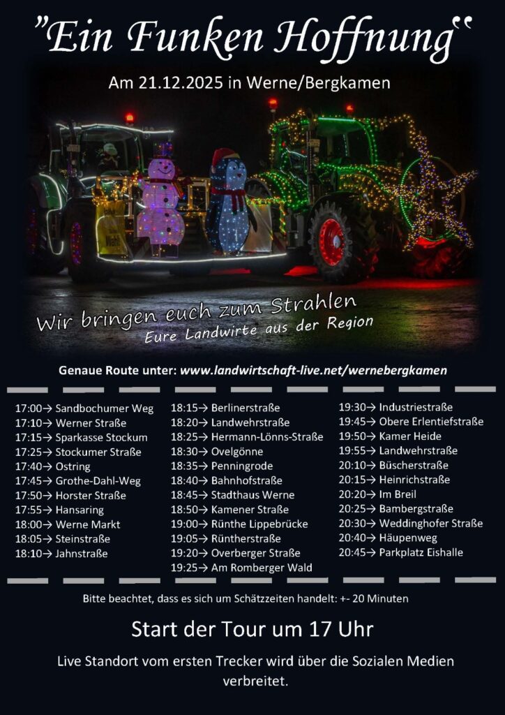 Die genaue Route ist auch hier zu verfolgen: www.landwirtschaft-live.net/wernebergkamen