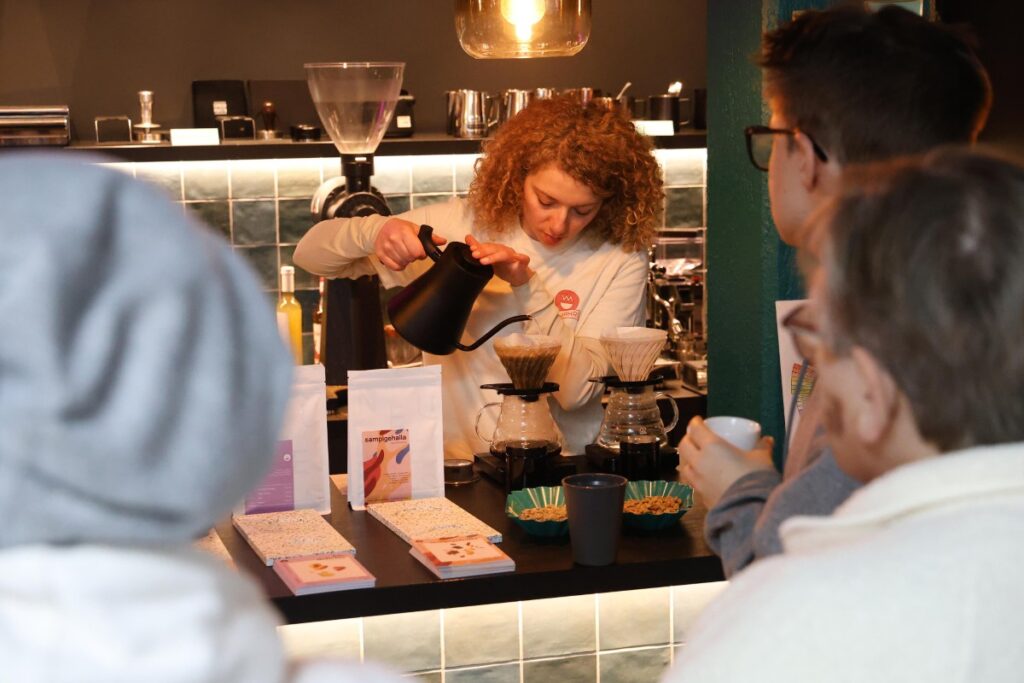 Das Kaffee-Tasting in der Espresso-Bar des Elektro-Fachgeschäfts Steinkuhl stieß auf reges Interesse. Foto: Volkmer