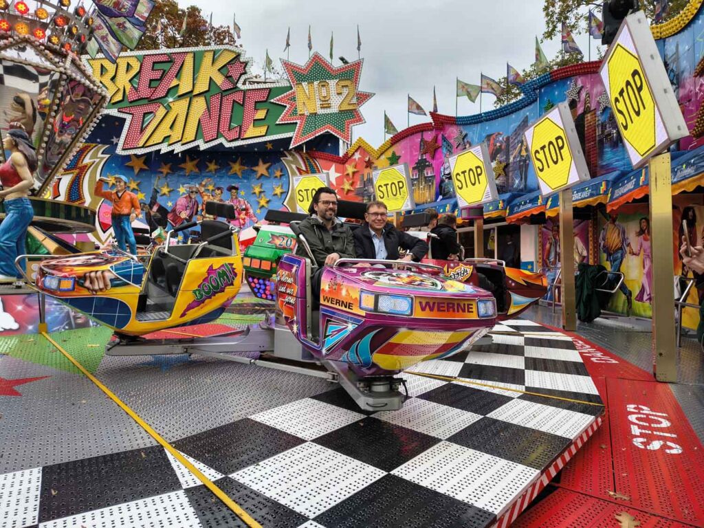 Frisch aus dem Entwurf am selben Tag enthüllt, wird das bunte Design mit Wernes Sehenswürdigkeiten wie dem Riesenrad, dem Werner Wappen und dem St. Christophorus das Fahrgeschäft komplettieren und Kirmes-Gänger begeistern. „Das ist eine großartige Idee, wie hiermit die Verbundenheit der Schausteller mit den Städten zusammenkommt. Und ich bin sehr froh, dass wir uns zur Einweihung zusammenfinden, um das Vorhaben in einen ordentlichen Rahmen zu gießen“, kommentiert Bürgermeister Lothar Christ die Verkündung.