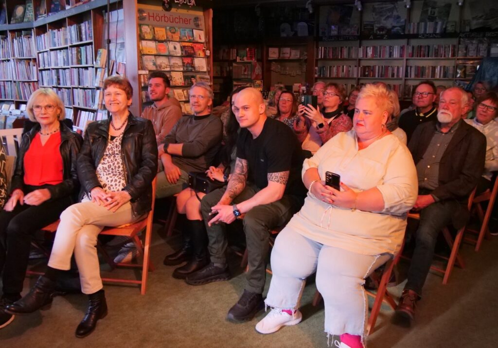 Alina hat sie die junge Frau genannt, die sich von ihrem narzisstischen Ehemann lösen will. Und sich plötzlich zwischen zwei Welten und zwei Männern wiederfindet. Keiner dieser beiden Männer ist ihr Ehemann. In der Lesung am Freitagabend (17. April 2026) stellte Petra Loyda vor ausverkauftem Haus ihren Debütroman vor. Eine düstere Romanze in einer Fantasiewelt.