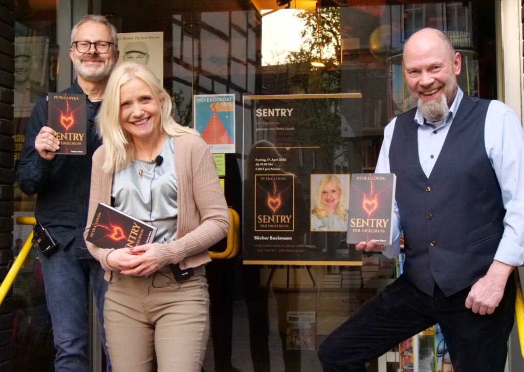 „Meine Cousine ist viel zu früh gestorben und ich habe nicht eingesehen, dass das Leben einfach so endet“, erklärt Petra Loyda. Durch das Schreiben habe sie einen Weg gefunden, damit umzugehen. „Das passte: Als Kind habe ich ein Kinderbuch geschrieben, das meine Cousine für mich noch auf der Schreibmaschine abgetippt hat.“ Loyda suchte eine Erklärung dafür, dass die Seele nicht einfach verschwindet. So erfand sie die Sentry – ein unsterbliches Volk, das die Sterblichen vor dem „cattivo“, dem Bösen (aus dem Italienischen, Anmerkung der Redaktion) beschützt. Seelenwanderung, Wiedergeburt und das uralte Problem, wie das Böse in die Welt kommt: „Das ist ein opulenter Stoff, der an die Grundfragen unseres Seins rührt“, urteilt Buchhändler Hubertus Waterhues über „Sentry. Der Engelskuss“.