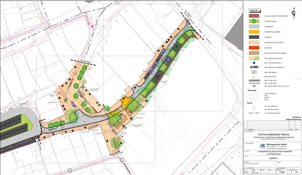 Werne. Die Entwurfsplanung für die Neugestaltung des Platzes vor dem Kapuzinerkloster samt Lückenschluss zur Fußgängerzone und Erneuerung der Südmauer (ab Kloster bis Neutor) befindet sich in der Endphase.
