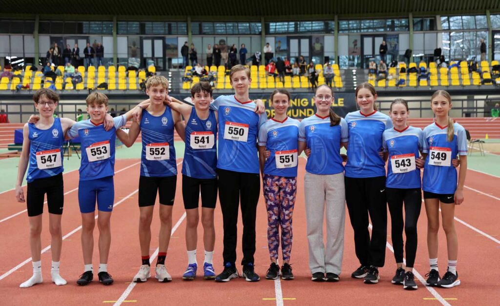 Auch Greta Lindenblatt und Theresa Hols – beide vom Jahrgang 2012- pulverisierten ihre bestehenden Bestzeiten und platzierten sich im Hürdenlauf auf Platz 7 (Lindenblatt) und 8 (Hols) in ihrem Jahrgang. Leonas Czeranka (Jahrgang 2012) lief zwei sehr gute Rennen über 60m in 8,53 Sekunden und über 60m Hürden in 9,95 Sekunden. Damit empfiehlt auch er sich ebenfalls wie Greta und Theresa für die „Westfälischen“.