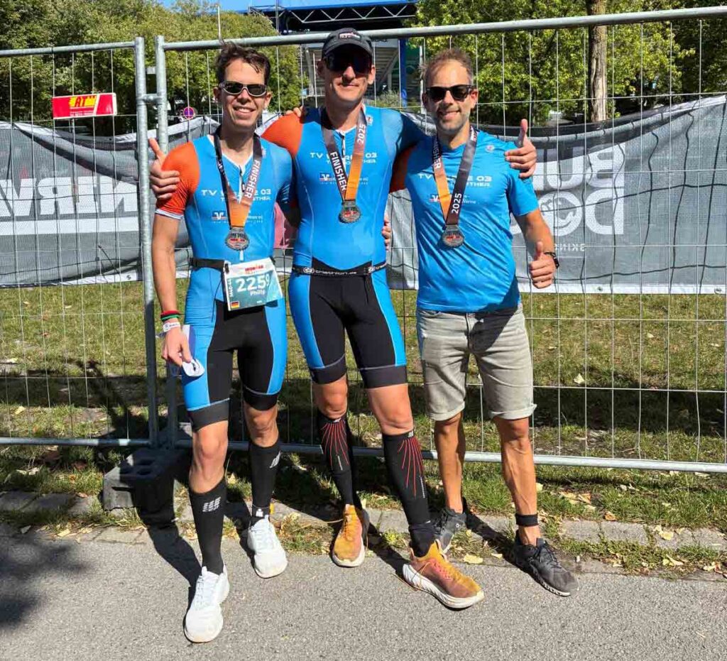 André Kerschek erwischte ebenfalls einen guten Tag. Das Schwimmen und die lange Wechselzone meisterte er problemlos, auf dem Rad forderten heftige Windböen die volle Konzentration. Mit einem Schnitt von 36 km/h legte er die Grundlage für eine Gesamtzeit von 4:58 Stunden – und damit die erhoffte Marke unter fünf Stunden. Besonders erfreulich: Seine lange verletzte Achillessehne hielt stand.