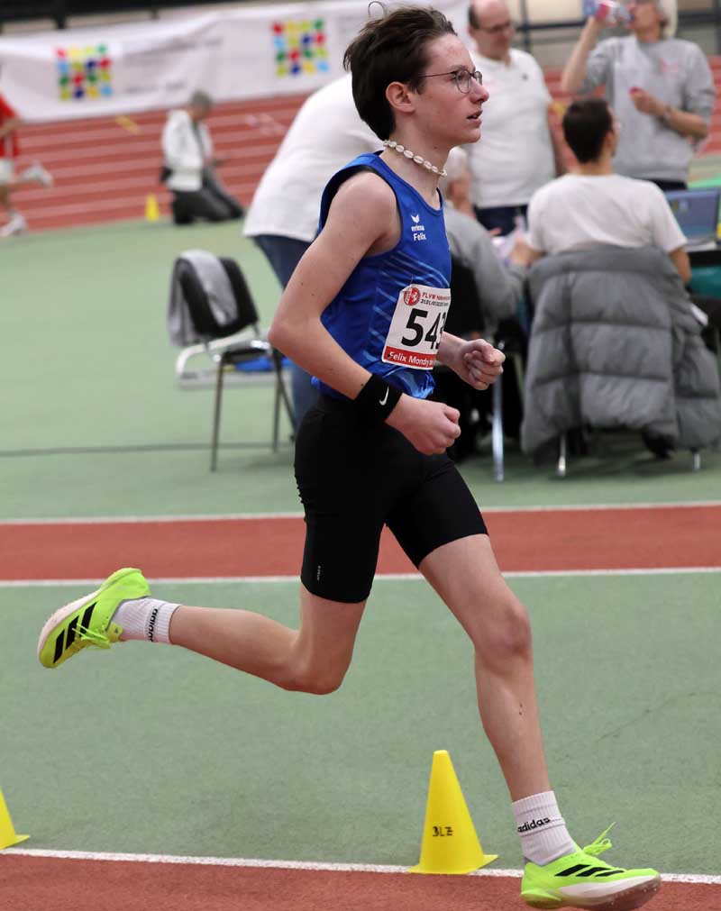 Ein ganz starkes Rennen lief Felix Mondry del Olmo über die 300m Distanz. Für die 15 Runden in der Halle benötigte er nur 10:10,48 Minuten und holte damit sensationell die Bronzemedaille.