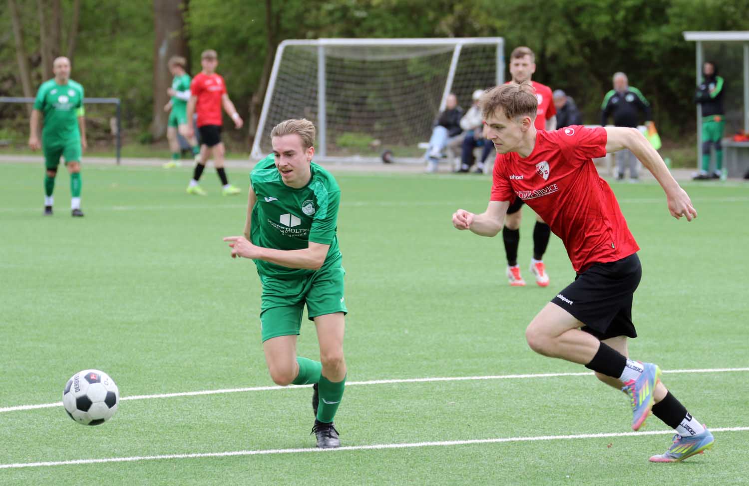 Die Platzherren standen auf ihrem Geläuf kompakt und ließen kaum Chancen der Gäste zu. Vorne erarbeiteten sich die Grün-Weißen auch Chancen, doch torlos ging es in die Halbzeitpause.