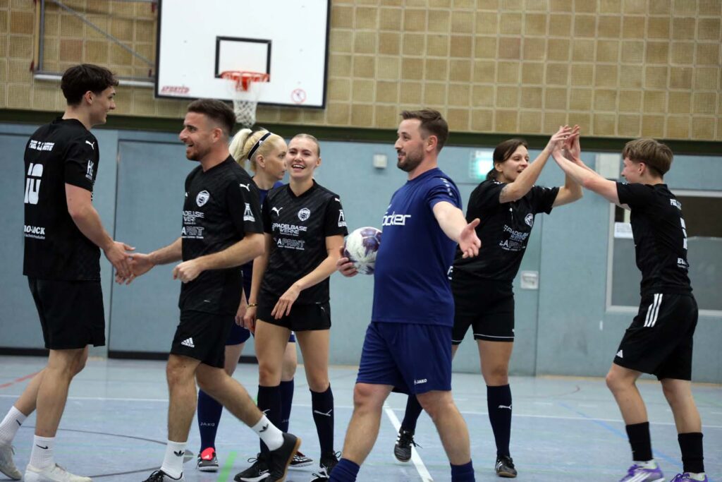 Neben dem sportlichen Wettbewerb sorgten auch die besonderen Turnierregeln für beste Unterhaltung: Tore von Frauen zählten doppelt, und gegen eine Spende konnten gegnerische Spieler mit originellen Handicaps ausgestattet werden – etwa mit einem Flamingo-Schwimmring oder einem Rucksack voller Tennisbälle.